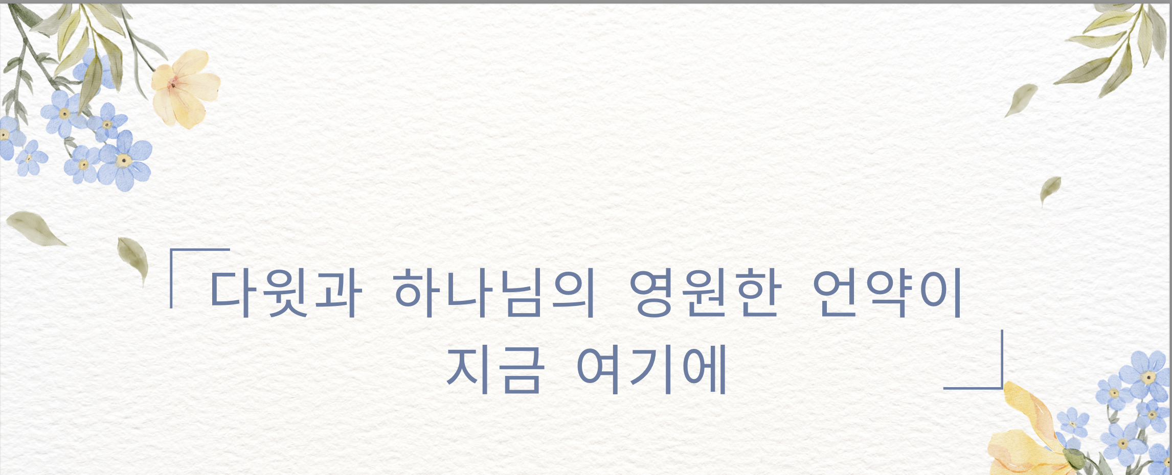 다윗이 남긴 마지막 말과 영원한 언약이 지금 우리에게도 있습니다. 우리는 다윗처럼 살기를 원합니다. 다윗의 삶을 배우고, 하나님의 영원한 언약을 아는 우리가 마지막 말을 남긴다면 어떻게 남길 수 있을까요?